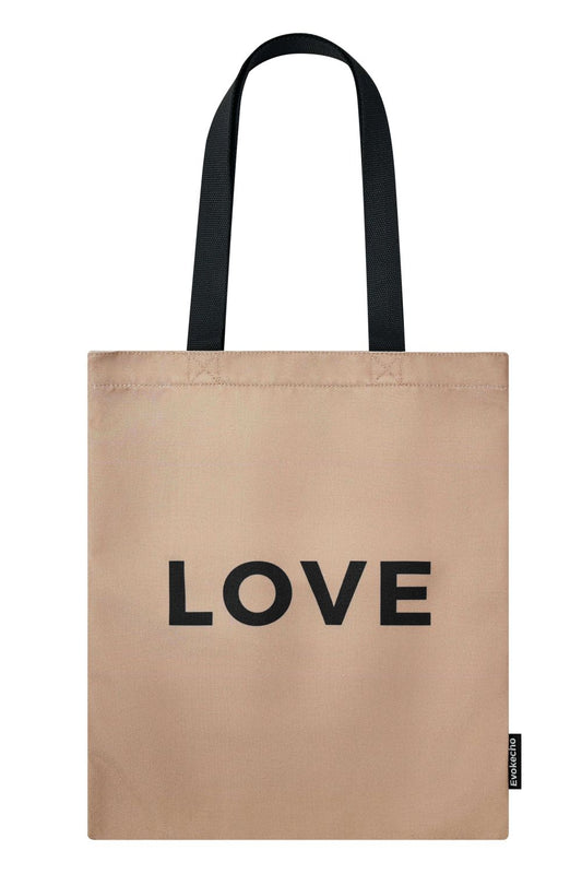 Evoke "LOVE"- Brown Large Canvas Tote Bag